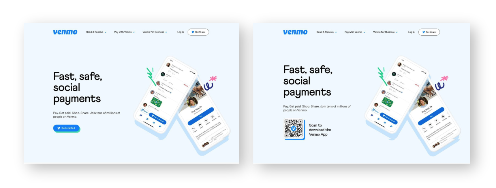 Finally, we saw a similar test run by Venmo, although they replaced the entire primary CTA with a QR code.